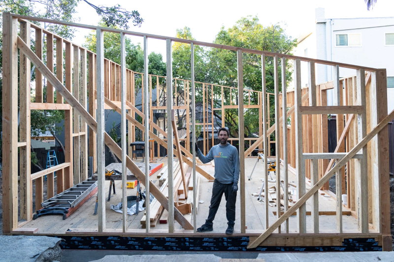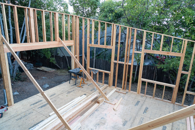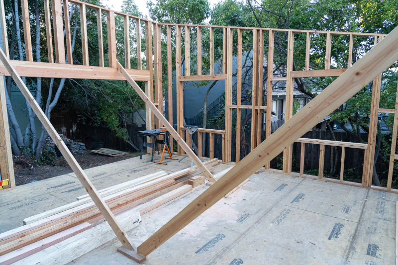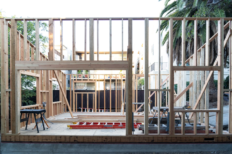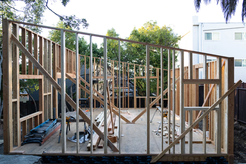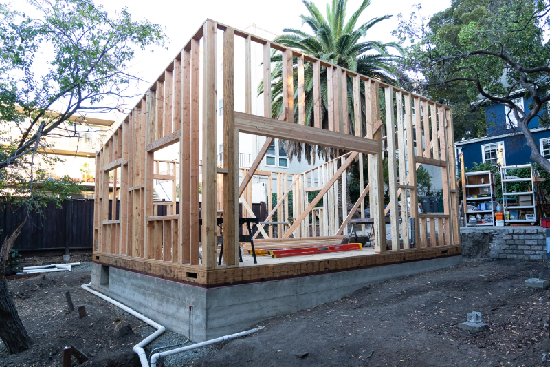 This project is a 575 sq ft ADU built in the backyard of this lot. The new construction project has been designed for the homeowner to live in upon completion of, when she will then rent out the much larger main house. Sometimes, the goal of a project is that one actually needs less space, as opposed to more. This 1 bedroom 1 bath features a very simple open floor concept, with a 12’ bi-fold door opening up to the gorgeous backyard. It also utilizes a state of the art heat pump for water heating, as well as 2×6 walls for superior insulation value, leading to greatly reduced heating/cooling needs. As of June 2025 this project is still under construction, and we will be complete by the end of of the year. Check back soon for final pics!