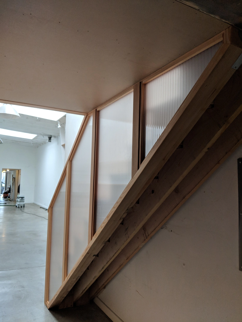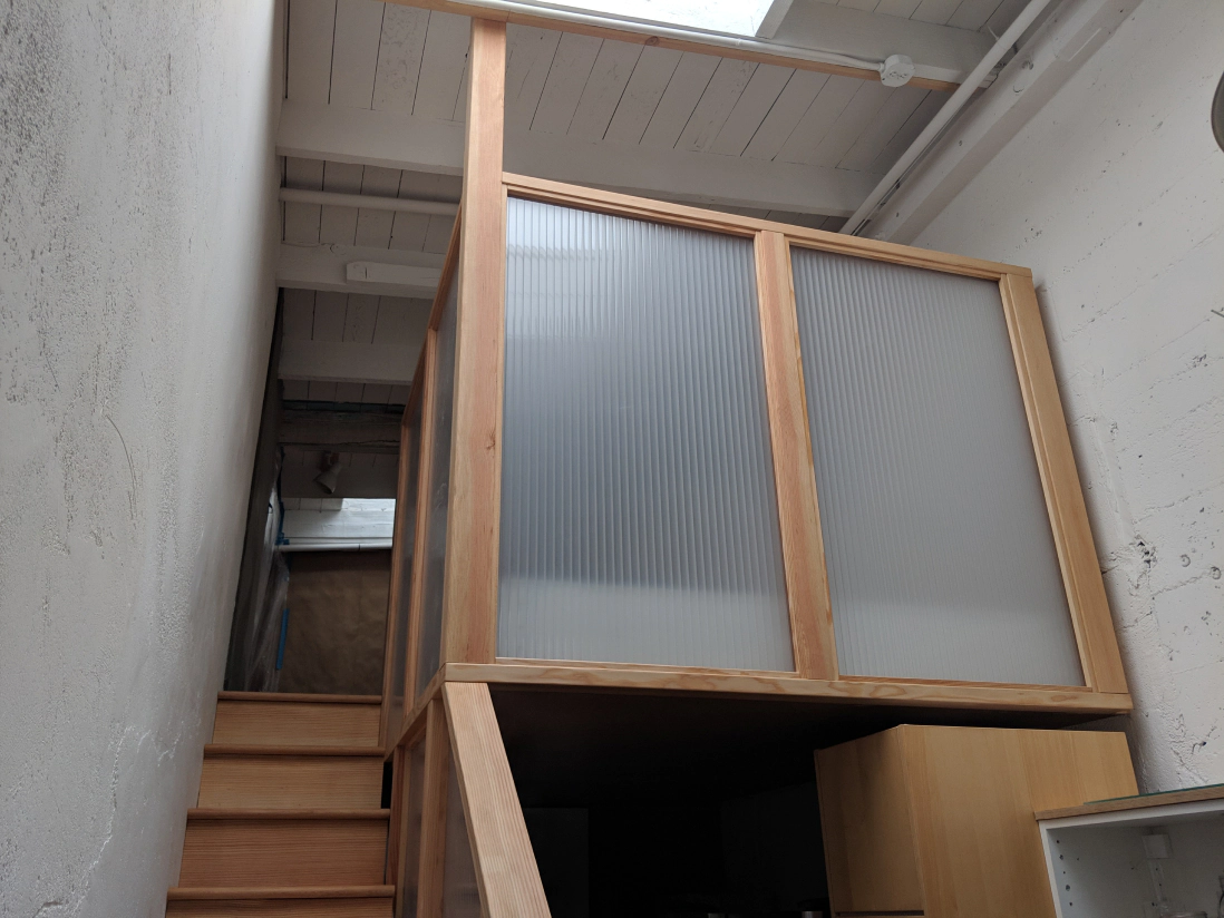 This live/work single floor space had no “getaway” for the residents, so this small 7’ x 8” loft addition was a really big deal for what it created for this couple. Finished with an obscured ¼” acrylic panel, this saved a lot of money compared to their first choice of thick glass for the railings. Overall this was just a really fun small project that illustrates how design services provided by myself or the team, can expedite the construction process. This project took me 4 days to complete, alone.